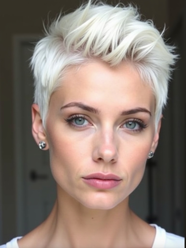 A faux hawk is a fun and edgy style that looks great with a platinum blonde hair color. When exploring 51 Platinum Blonde Hair Color Ideas Fresh New Look, a faux hawk offers a less permanent but equally impactful alternative to a full mohawk. This style is perfect for those who want to experiment with a bolder look without committing to a permanent haircut. To create a faux hawk, tease the hair at the roots to create volume, and then style the hair into a central ridge, securing it with hairspray or bobby pins. The platinum blonde enhances the edgy and rebellious quality of the faux hawk. This hairstyle works for Bright Blonde Summer Hair.